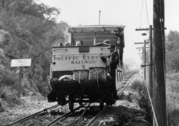 A Pacific Electric Car travels down the Incline towards Rubio |