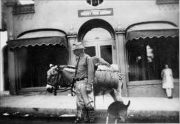 The camp had great views of the valley and on a ridge above it circling the mountain could be seen the Mt. Lowe trolley. One of the visitors to the camp was C. W. Siefert who enjoyed the place so much he decided to stay. After a harrowing windstorm blew the judges cabin and others off the side of the mountain Siefert decided to stay on as the proprietor. Siefert rebuilt the cabins and renamed the spot Camp Sierra. Mr. Seifert made side money by collecting ferns and hauling them once a week into town on his burro named Molly. The ferns would be sold to local Altadena florists and the money used to buy supplies. On many of the trips back up Lake Avenue C. W. Siefert was joined by Angelyne (Smith) and Robert Kinstle. Siefert knew their grandfather Gregor Vetter and they were friends both hailing from Baden, Germany. Angelyne and Robert often visited Mr. Seifert on the way to visit Mt. Lowe.