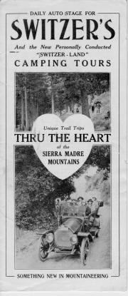 For those hearty hikers from Altadena it was only 8 1/2 miles away. From Pasadena it was 10 miles by auto stage and 3 1/2 miles by trail. Being on the doorstep of Pasadena and having the rugged San Gabriels as its back yard made Switzers a powerful location.