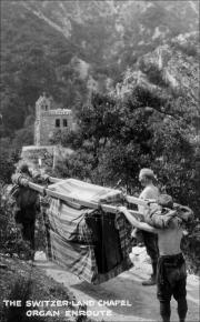 Mt. Wilson rebuilt the Switzers and was instrumental in putting in a single wire telephone, a very early convenience for the mountainous area. It was in 1909 that Switzers was the base camp for the search party that went looking for the crew of the lost balloon the American.In 1911 Lloyd Austin came to the Arroyo Seco Canyon and became fascinated by the rugged and wild beauty of the canyon. Borrowing the money to buy the camp, he and his wife made the newly named Switzer-Land the number one resort in the mountains. It was Austin that built with donations the Christs Chapel on a rocky outcrop two hundred feet above the upper waterfalls. The Chapel and its amphitheater that sat two hundred people became a popular center for conferences, youth retreats, weddings and of course Sunday morning prayer.